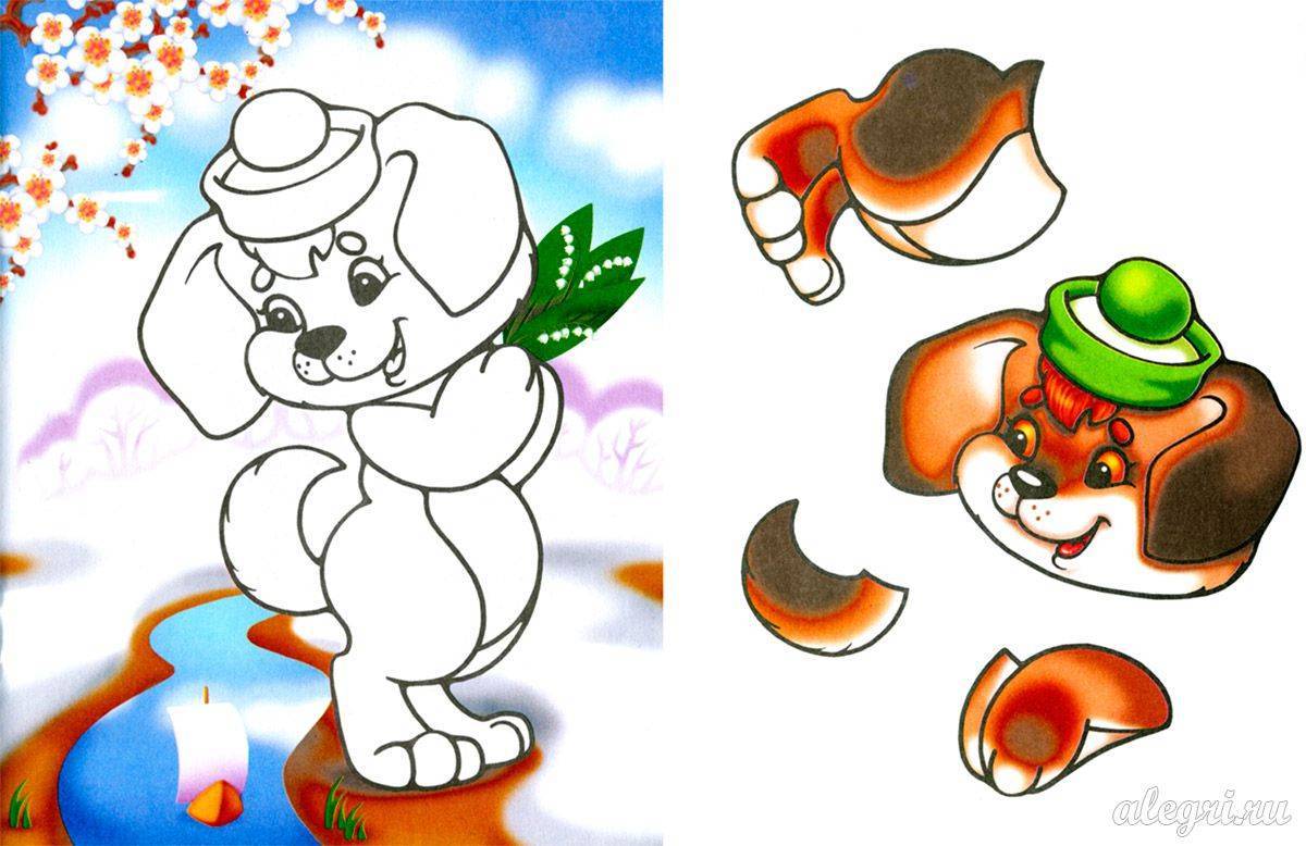 Аппликация для детей от 4 лет «Собаки». Пошаговая инструкция с шаблонами