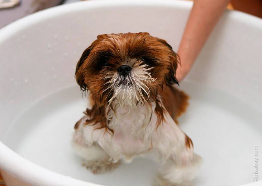 Если собака сильно загрязнилась и другого варианта, кроме вашей ванны нет, мойте питомца по инструкции.