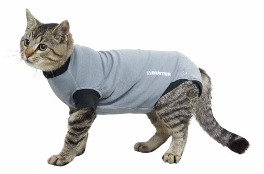 В современных зоомагазинах существует огромное количество самых разнообразных попон для кошек, которые предназначены не только для защиты шва после той же стерилизации, но и для утепления животного или защиты вашей мебели от продуктов обменных процессов в его теле (например, известно, что сфинксы могут очень сильно потеть, оставляя малоприятные разводы или пятна на домашней мебели).