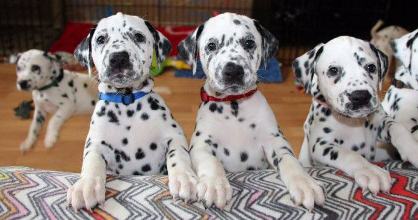 Интересный нюанс – щенки далматина рождаются без пятен. Отметины появляются в течение первых 10 дней. А окончательная окраска далматских догов формируется лишь к 12 месяцам. Животные, которые рождаются с пятнами, считаются браком – их не допускают к размножению и участию в выставках.