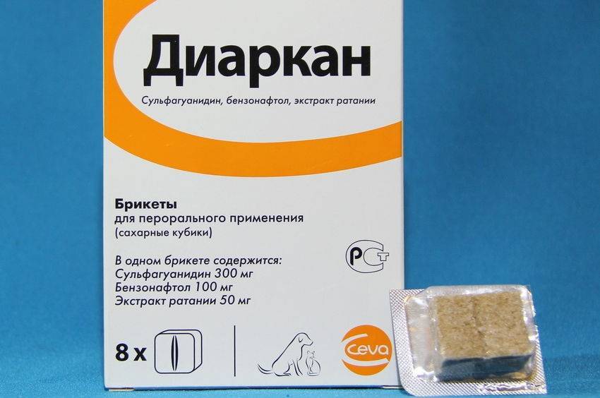Данный препарат выпускается в виде сахарных кубиков, что очень удобно для кормления собак. Он медленно всасывается в кишечнике, что обеспечивает его длительное воздействие на патогенные микроорганизмы. Экстракт жидкого ратания, входящий в состав диарканы, образует пленку на слизистой оболочке кишечника. Он защищает и способствует восстановлению водно-солевого баланса в кишечнике. Также пленка предотвращает попадание в организм токсинов от патогенных бактерий.