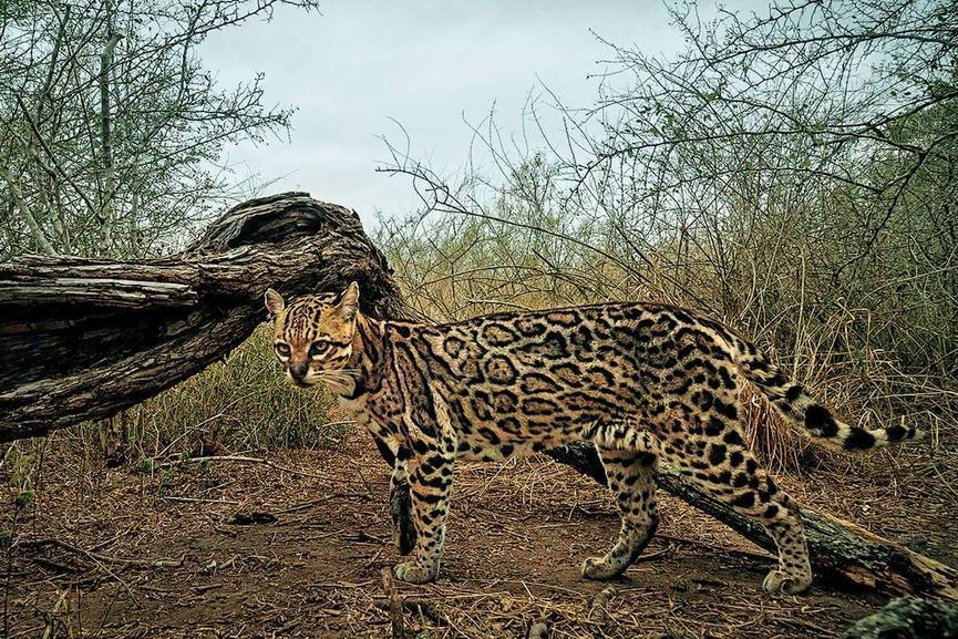 Оцелот — сравнительно небольшой хищник семейства кошачьих. Длина тела взрослых особей достигает 80-130 см, а длина хвоста — около 30 см. Высота животного в холке находится в пределах от 40 до 50 см.