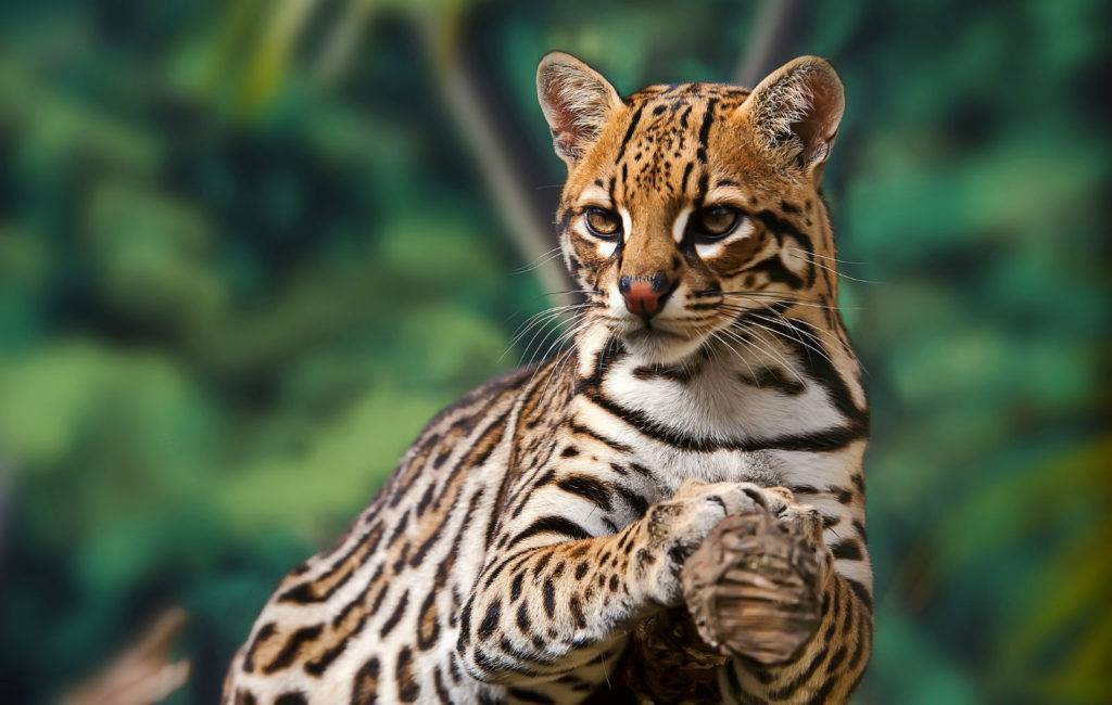 Необходимо учитывать, что в природных условиях млекопитающее живёт в теплом тропическом климате, поэтому оно требует поддержания температуры не ниже +20 °C. Кормить хищников рекомендуется живыми грызунами (мышами, морскими свинками, кроликами, крысами и пр.), так как только в живом мясе содержится весь необходимый для них комплекс минеральных веществ, ферментов и различных витаминов. При питании несвойственной им пищей (мясом — говядиной или бараниной) кошки страдают от недостатка витаминов, у них начинаются проблемы с пищеварением, выпадает шерсть и они неизбежно погибают.