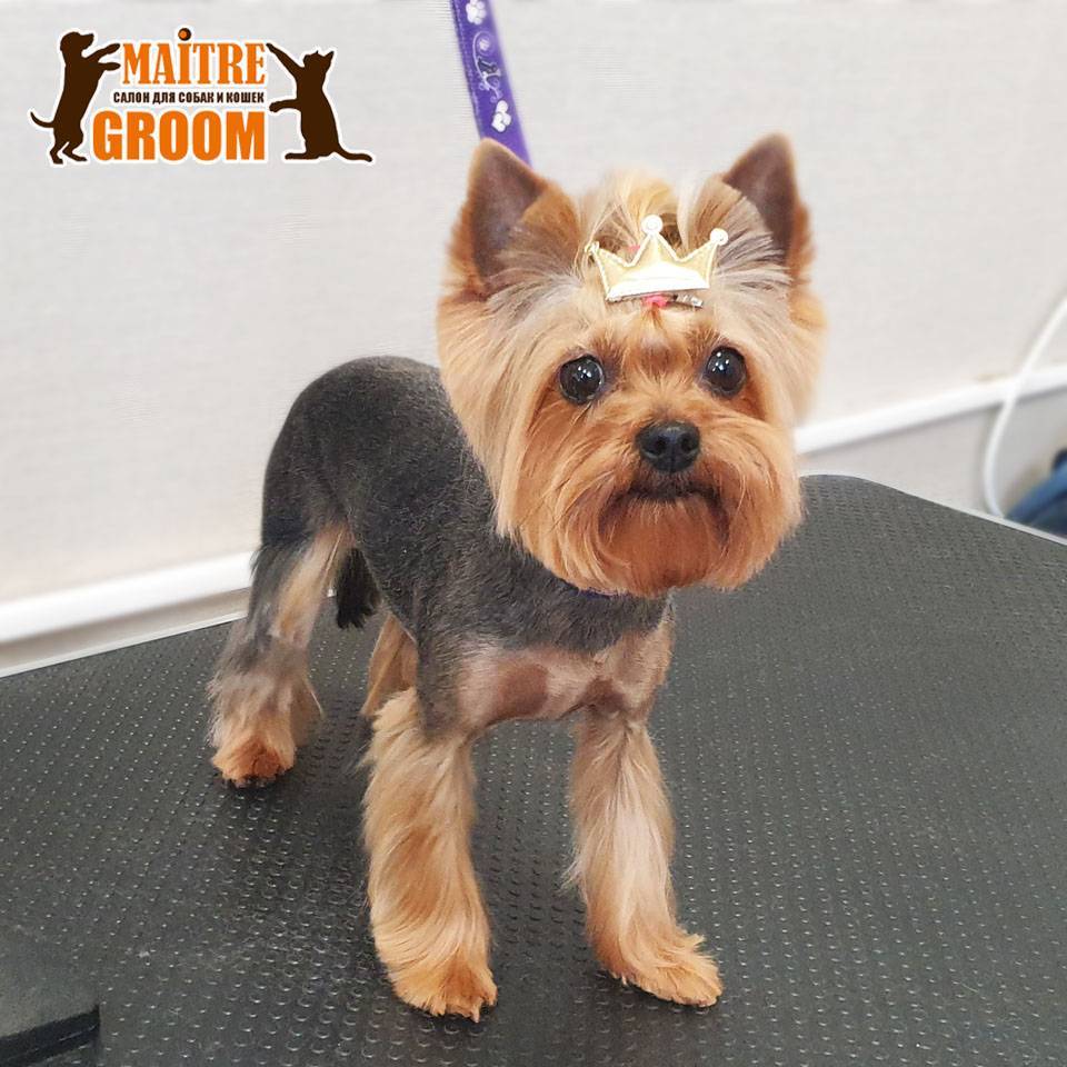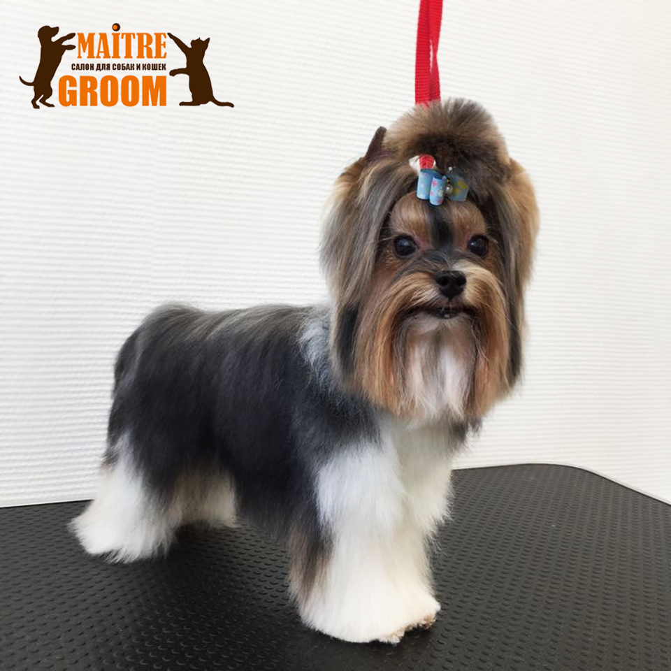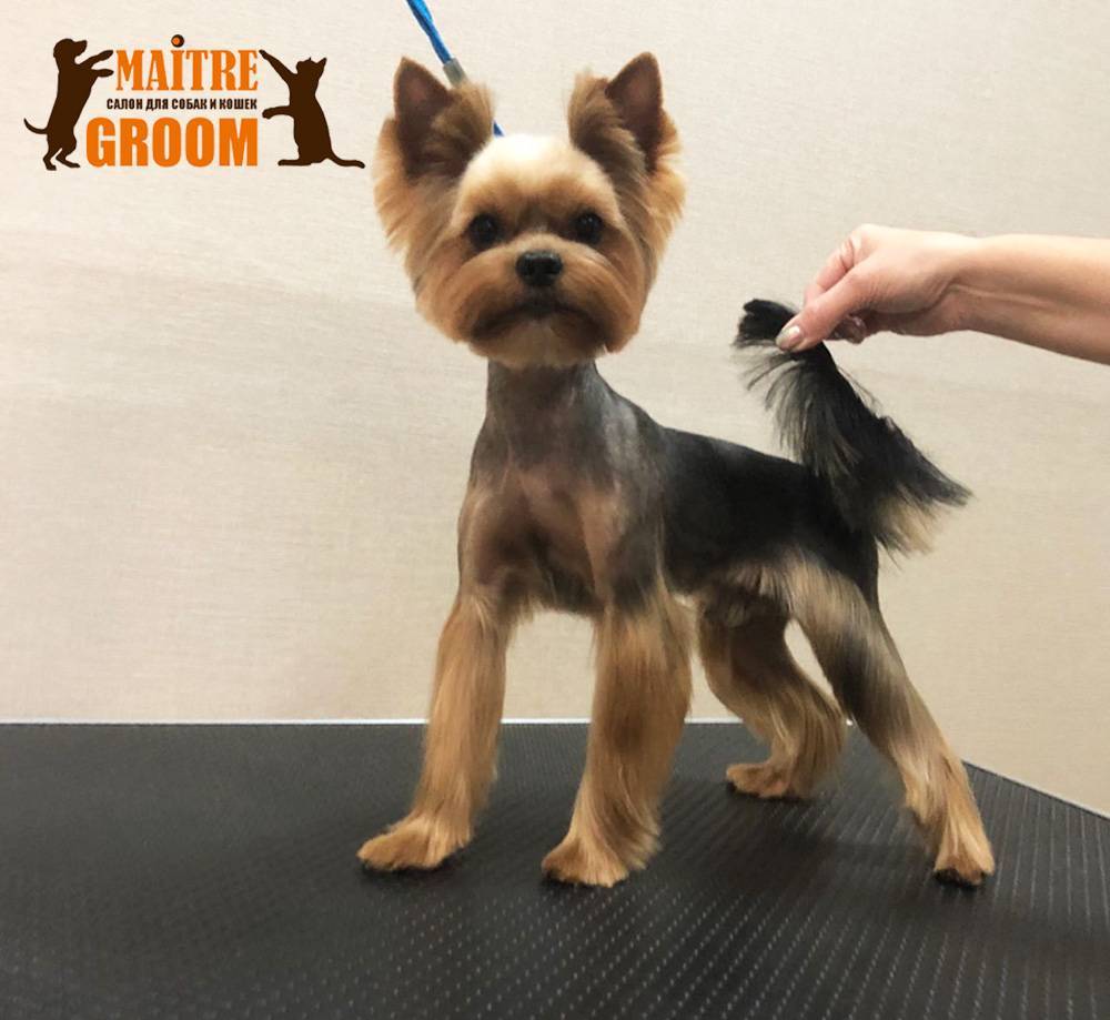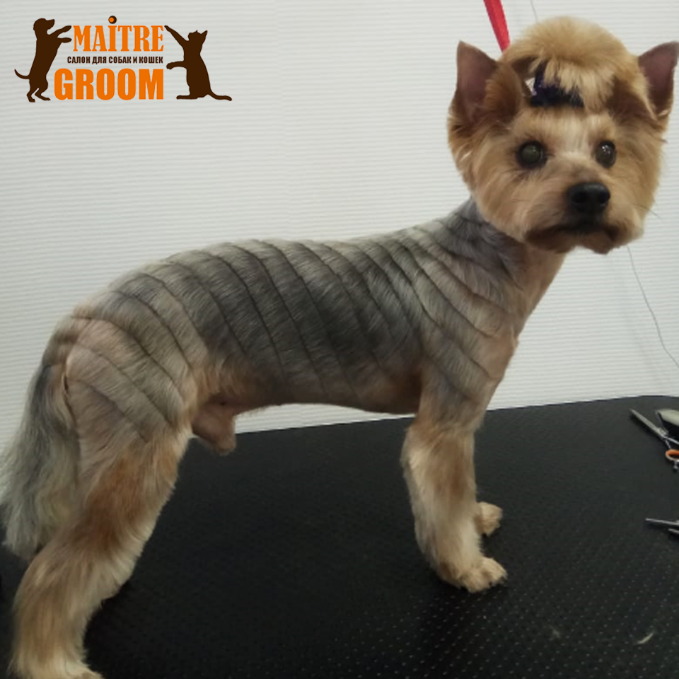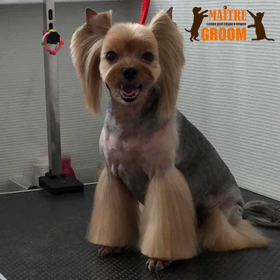 С такой прической йоркширский терьер имеет черты, схожие со шнауцером. Шерсть на лапках остается длинной, в то время как корпус, затылок и ушки подстригаются коротко. Длинными остаются волоски на челке, щеках и бороде.