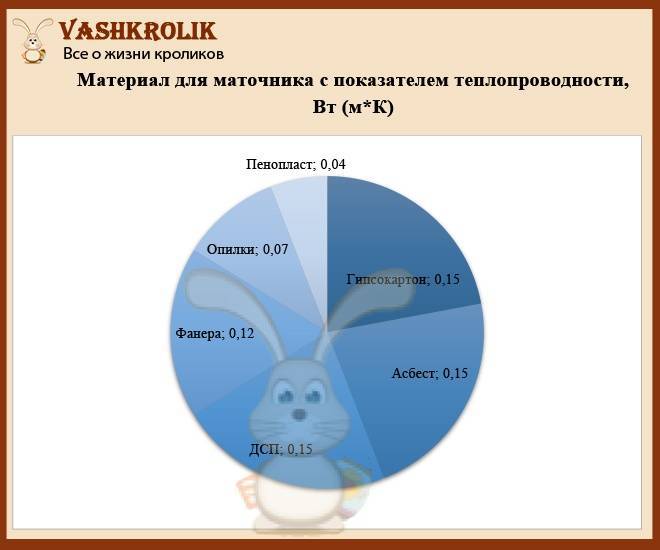 Материал для изготовления маточника выбирают с учётом теплопроводности. Чем меньше теплопроводность, тем теплее будет крольчатам.