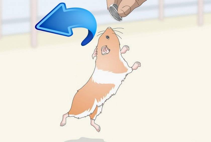 Питомца следует поставить на ровную твёрдую поверхность, приманить ароматными семенами или орехами, затем демонстративно уложить лакомство на спину хомяку. В желании съесть вкусную еду, грызун будет пытаться сделать кувырок назад. Получаться у него будет не сразу, главное — регулярно тренироваться.