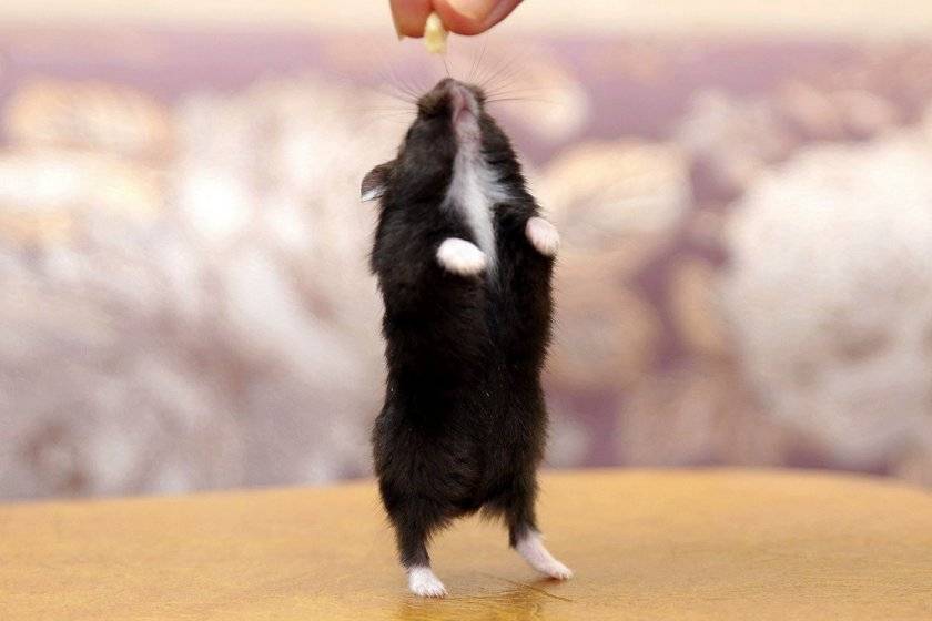 Такое упражнение под силу любому хомяку, поэтому приступать к обучению можно в самом раннем возрасте. Дрессировка обязательно проводится с любимым лакомством грызуна, в надежде дотянуться до которого, питомец будет стараться встать на задние лапы.