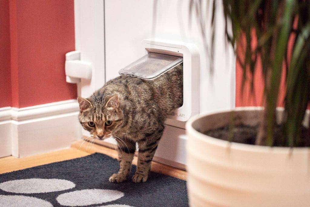 Вы также можете приобрести электронную дверцу для кошки, которая обнаруживает индивидуальный идентификационный микрочип в ошейнике кошки, чтобы бездомные кошки не смогли проникнуть в ваш дом.