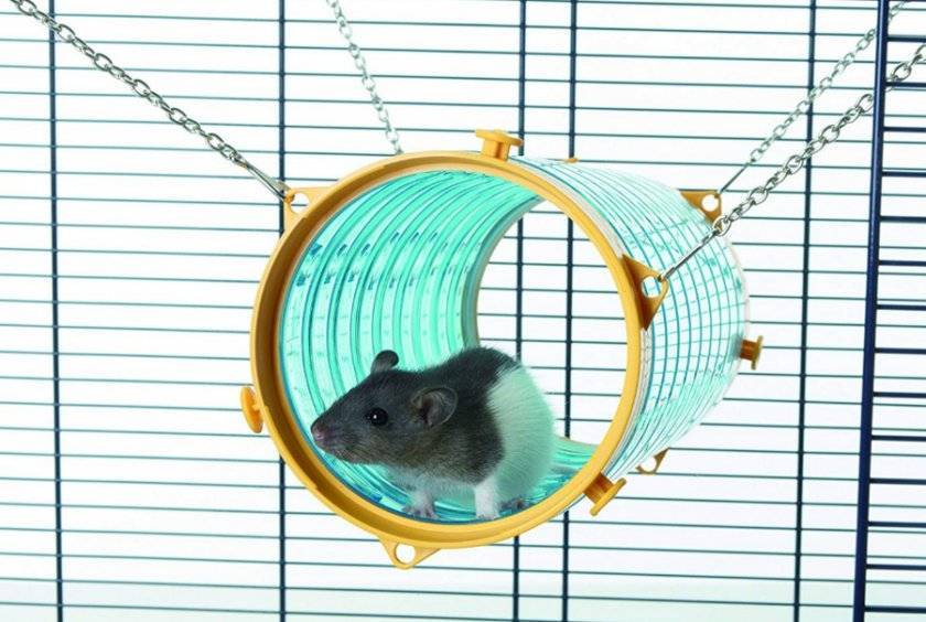 Каждая клетка для крысы или мыши также должна содержать различные домики, укрытия и туннели, в которых животное может прятаться. Такие приюты дают питомцу чувство безопасности и позволяют спокойно отдыхать. Строительство и движение по коридорам и туннелям — игра, полностью увлекающая большинство грызунов, поэтому нужно позаботиться о том, чтобы в их окружении были и такие игрушки. Существуют модели лабиринтов в виде труб, которые можно без труда перестраивать или расширять, добавляя дополнительные коридоры для усиления сложности их преодоления.