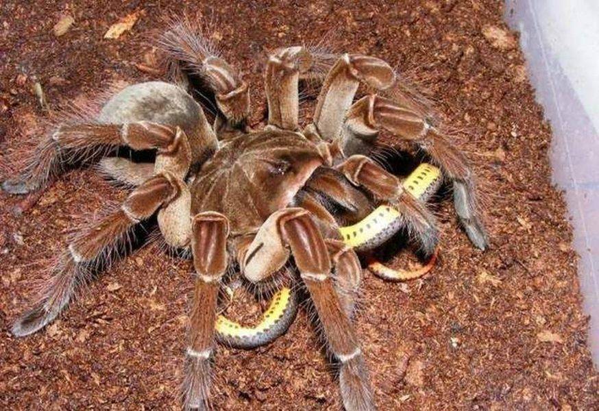 Птицеед-голиаф является единственным пауком в мире, который охотится на змей