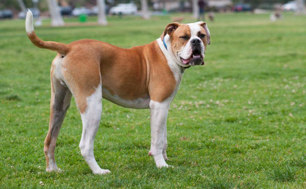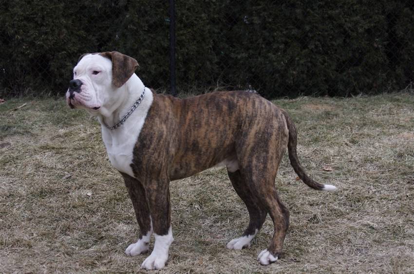 Староанглийский бульдог – это собака, ростом не больше 51 см и весом около 36 кг. Упрямый, своевольный и в меру агрессивный питомец, которому необходимы ежедневные тренировки и твердые лидерские команды.