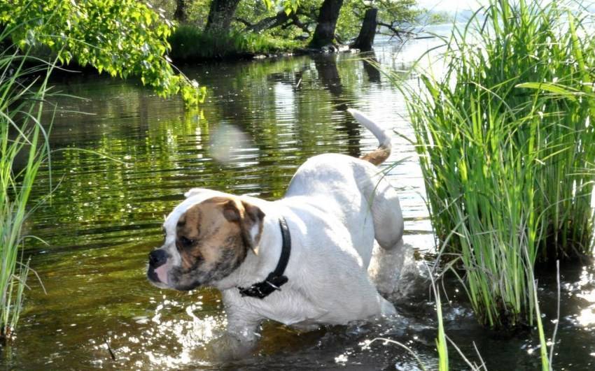 Американского бульдога преднамеренно вывели как бойцовскую собаку. Бороться до последней капли крови – это его кредо. Доказано, что у них на генетическом уровне заложена невосприимчивость к подчинению. Это означает, что если уж собака бросилась и вцепилась в объект своего раздражения, то душить будет до конца.