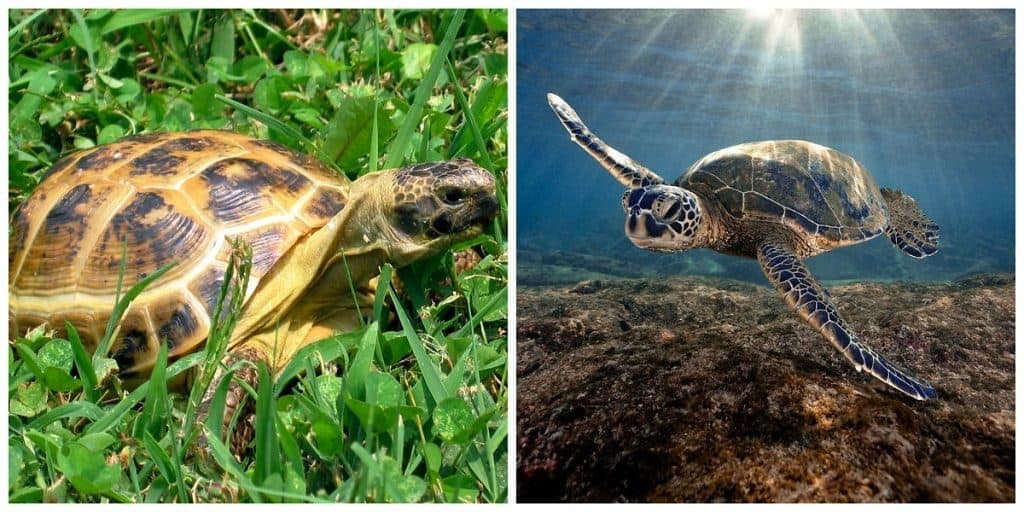 Не все наземные рептилии умеют плавать, поэтому отличаются между собой строением. Природа и образ жизни сухопутных особей наградили их куполообразным панцирем и длинной вытягивающейся шеей.