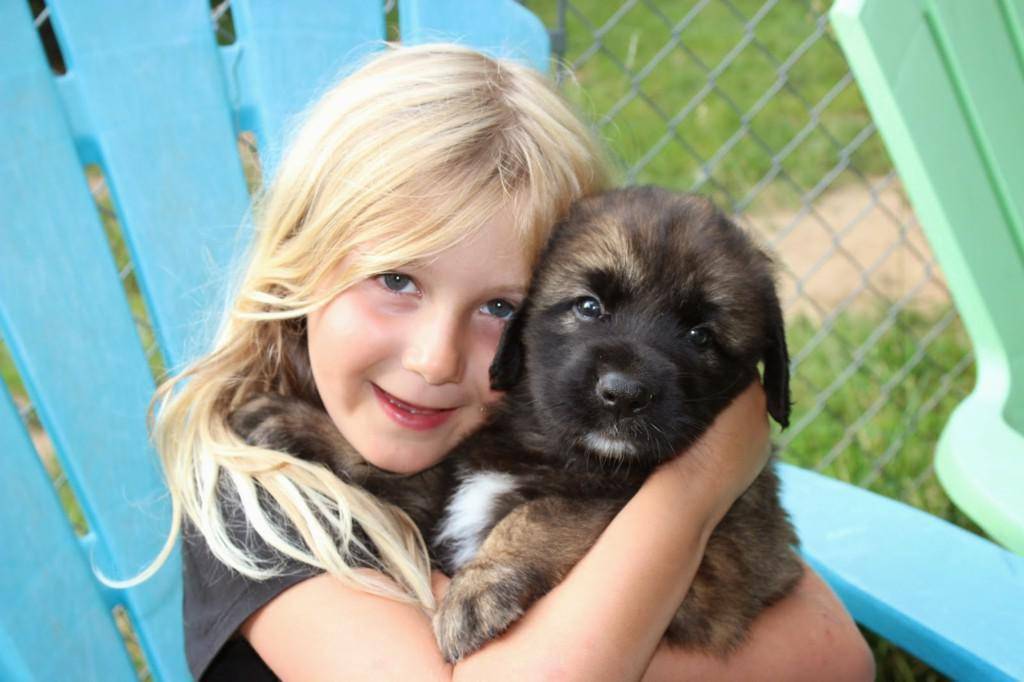 Оставлять наедине щенков Леонбергера и детей не советуют. Пока собака еще не обучена, она может травмировать ребенка во время игры.