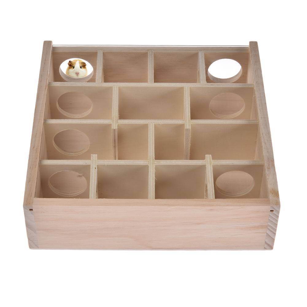- Приготовить 3–4 длинные внутренние перегородки. Их длина должна соответствовать ширине ящика. На одном или двух краях каждой стенки необходимо сделать круглые отверстия, чтобы хомяк смог в них пролезть.