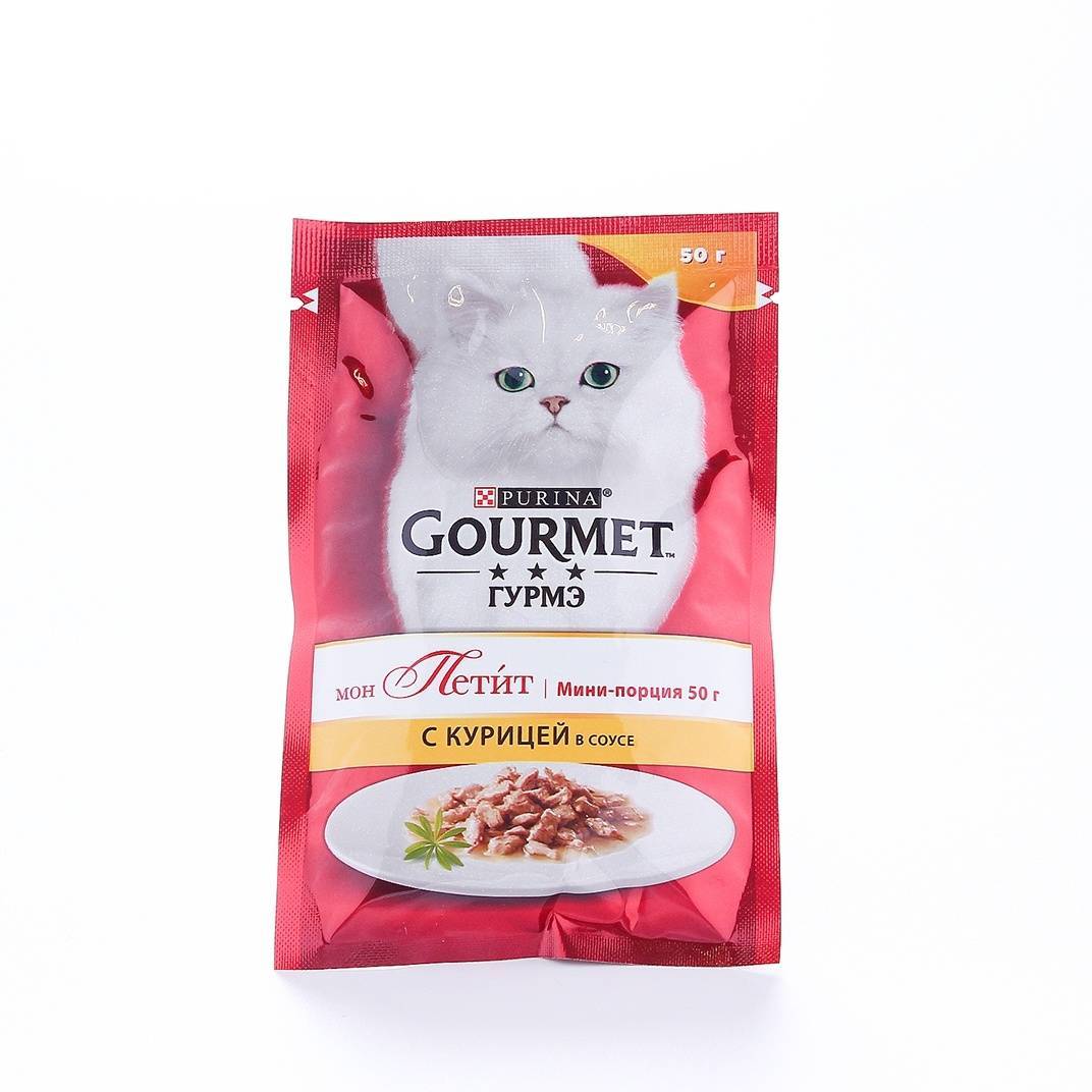 Линейка кормов Гурме включает в себя Gourmet Gold, Perle, Mon Petit, A la Carte. Производится он только для здоровых взрослых кошек.