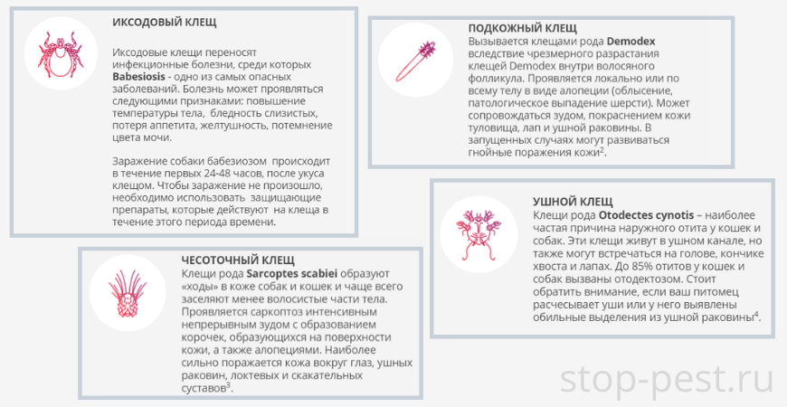 Для собак распространено поражение следующими видами клещей:
