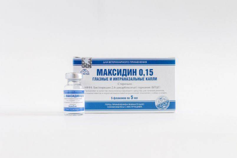 Максидин 0,15 иногда называют каплями для глаз, так как именно с этой целью его, как правило, и выписывают в ветеринарных клиниках (кстати, как кошкам, так и собакам). Иммуномодулирующий раствор 0,15% предназначен для закапывания в глаза/носовую полость.