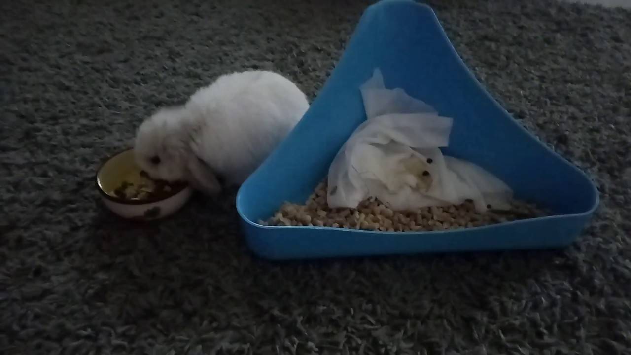 В первое время, пока крольчонок совсем маленький, очень трудно приучить его ходить в туалет в специальную емкость. Очень часто он справляет свои нужды рядом с лотком.