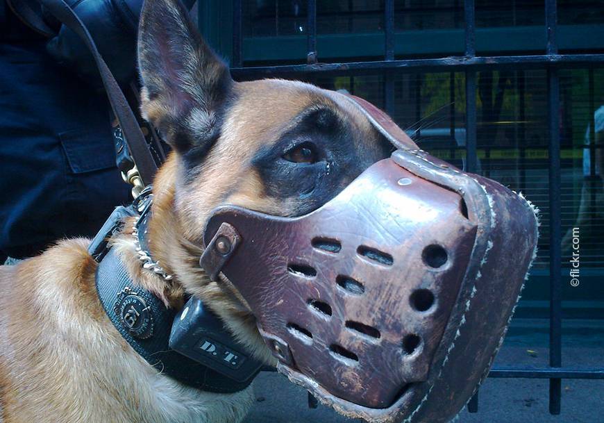 - Надевают намордник принудительно. Животное в таком случае начинает испытывать страх к этой вещи или проявлять агрессию по отношению к человеку.
