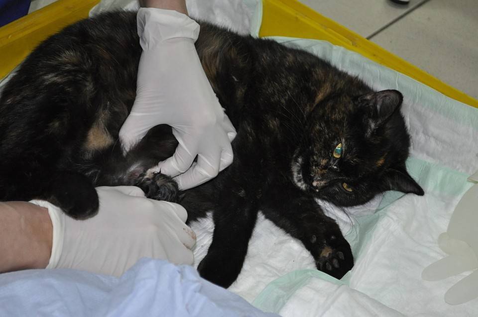 - используют общий наркоз, при котором кошка засыпает, не может двигаться;