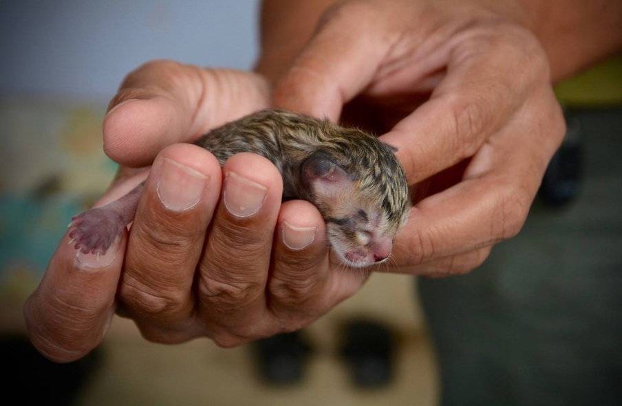 Вес новорожденных составляет 80-120 г, а длина их тела – 9-12 см. На свет они появляются лишенными зрениями и слуха, поэтому очень нуждаются в помощи матери или человека. Первое время они постоянно спят и много едят. Из-за хрупких костей малыши не могут стоять на лапках. Они ориентируются при помощи развитого обоняния и осязания и используют для общения тоненький писк. В первое время их лучше не трогать. Достаточно следить за их весом.