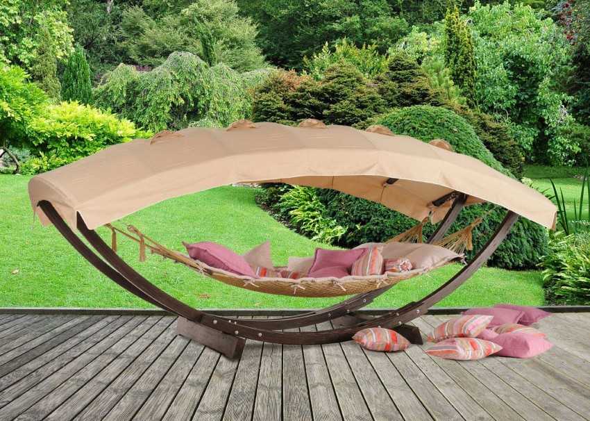 Используя ткань ярких цветов, можно сделать уникальный и интересный гамак, который будет выделяться из общей картины. Вешать яркие гамаки лучше в тени, чтобы от солнечных лучей ткань не выцвела.
