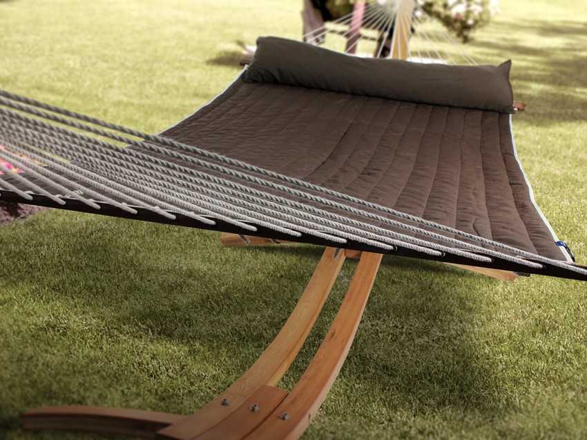 Подушки в гамак можно закрепить с помощью веревок, чтобы они не спадали от ветра.