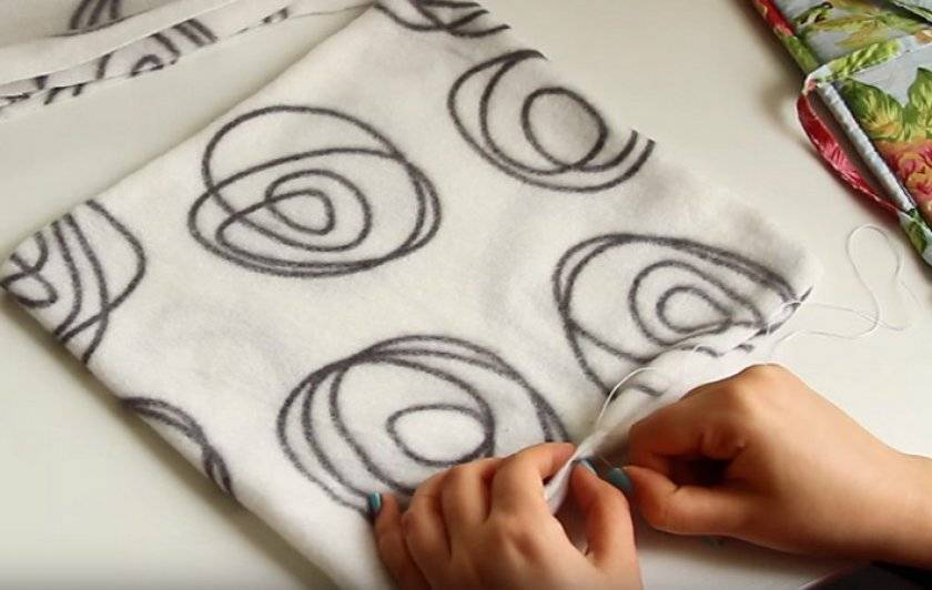 - С помощью плотной ткани обшивается каждое кольцо. Часто для этой цели используют флис.