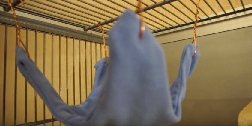 Важно! Тех, кто подумал о том, что пунктом 3 тоже можно пренебречь, спешим предупредить: грызуны лихо расправляются с необработанными краями, а нитки способны забить желудок и кишечник, причинив серьезные неудобства животному. Видео: гамак своими руками