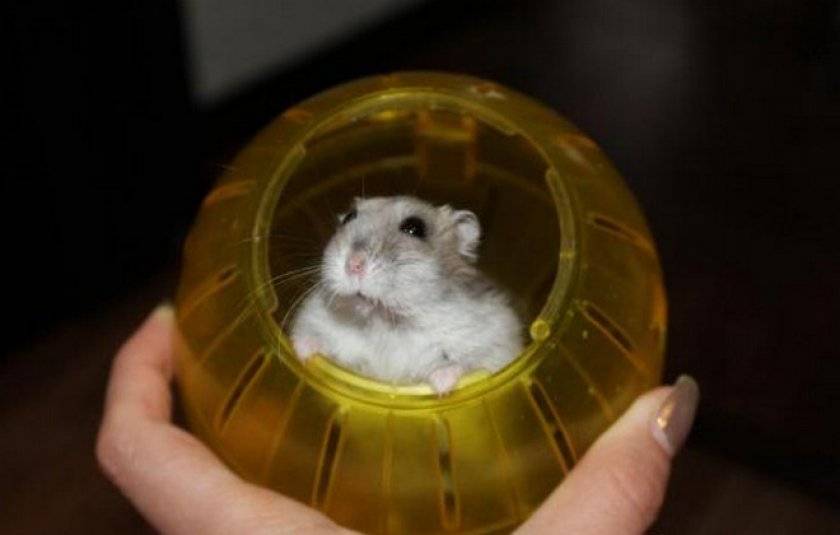 Единичная прогулка в таком положении питомцу не повредит, однако регулярное напряжение может привести к проблемам с позвоночником. Но и в крайности кидаться не стоит, так как большой шар также негативно скажется на передвижении грызуна.
