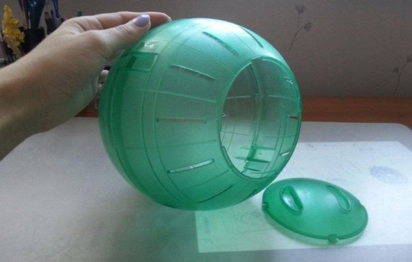 Старый круглый плафон из пластика очень хорошо подойдёт, чтобы создать игрушку для питомца. Пластик должен быть прозрачным, чтобы зверёк видел, куда он направляется. Обычно такие плафоны имеют диаметр 13-15 см, поэтому шарики из них можно делать как для джунгариков, так и для молодых сирийцев.