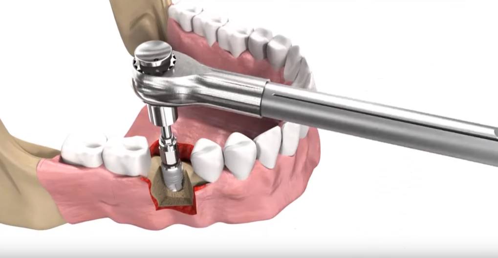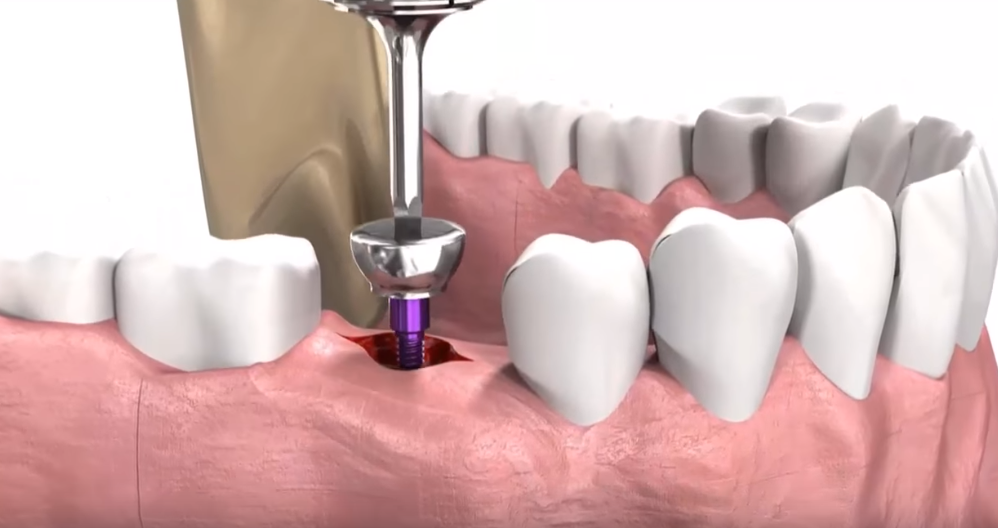 Сначала искусственный корень вживляется электрическим прибором. После завинчивается вручную до сопоставления с краем кости.