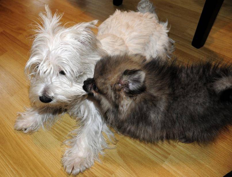 - лучше постелить на пол старый свитер или еще какой-то предмет одежды, так как запах владельца действует на животное успокаивающе.