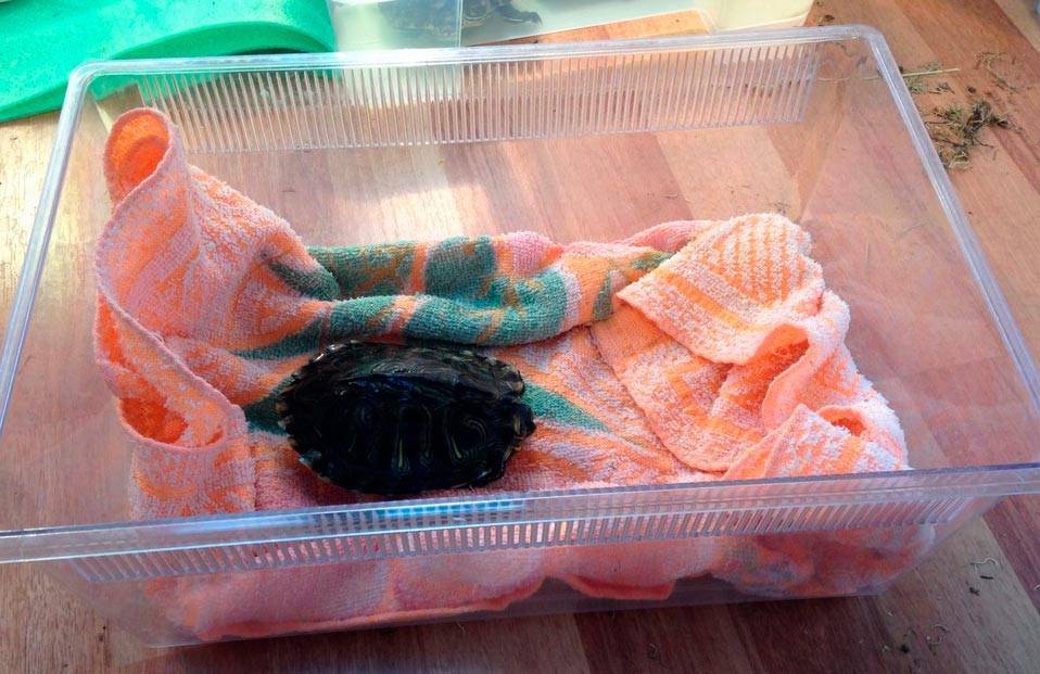 - поддерживайте баланс жидкости, избегайте обезвоживания (черепаха должна быть в воде, пить);
