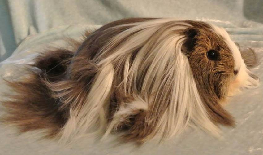 Мерино – этих морских свинок также называют королевскими, благодаря интересному строению шерсти. Эту породу получили в результате скрещивания коронета и рекса. Шерстка у мерино кудрявая, напоминает шкурку овцы. На голове есть розетка, так же как и у коронета, напоминающая корону. Из-за густой и длинной шерстки хозяевам такой породы приходится летом стричь своих питомцев. Цветовая гамма шерстки может быть разной – белой, серой, коричневой. Так же бывают мерино сочетающие в себе несколько цветов.