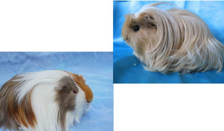 Альпака – отличаются красивой, длинной и курчавой шерсткой, растущей в направлении мордочки. В области крестца у грызунов этой породы есть две розеточки. На головке также может быть розетка,образующая челку. На мордочке шерстка немного жестче, чем на остальном теле. Окрас может быть любым – рыжим, черным, золотистым. Можно встретить двухцветную и даже трехцветную альпаку, но это большая редкость.