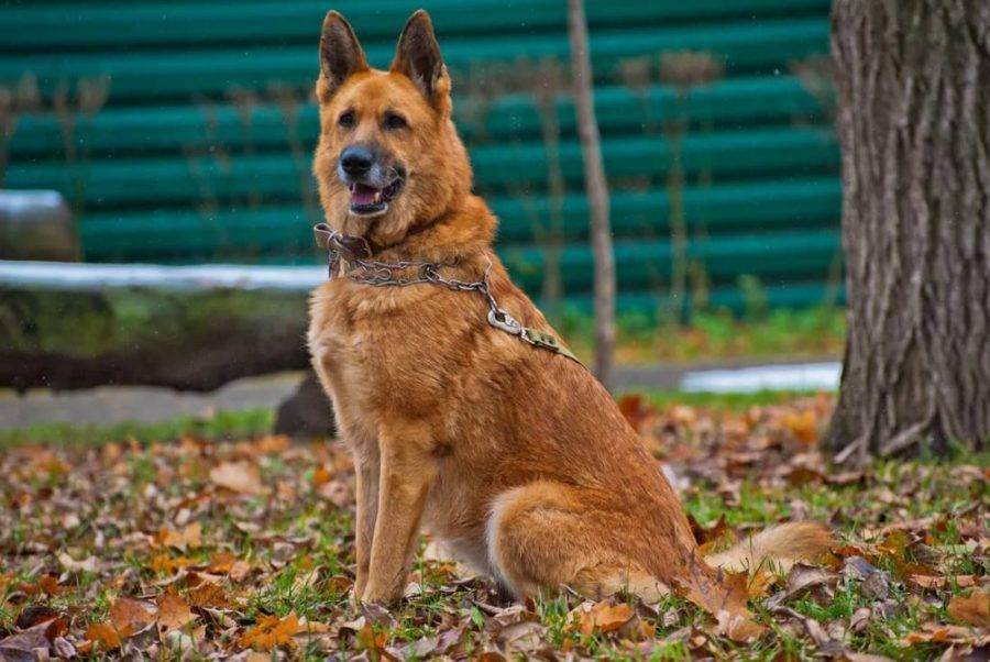 На фото овчарка рыжего окраса