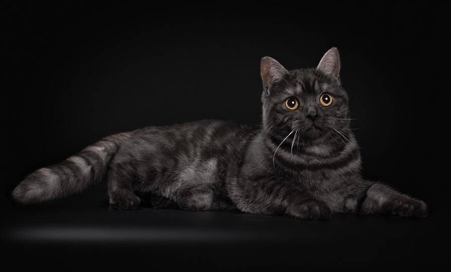 Этот кошачий окрас является самым редким среди всех дымчатых. Основной цвет животного черный, но при движении проявляется подшерсток белого цвета. Бока немного светлее спинки. Подушечки пальцев и носик черные, глаза от ярко-оранжевых до медных. Чем контрастнее цвета основной шерсти и подшерстка, тем лучше. Никаких плавных переходов и узоров быть не должно. Окрас черный дым у кошек пользуется популярностью среди заводчиков.