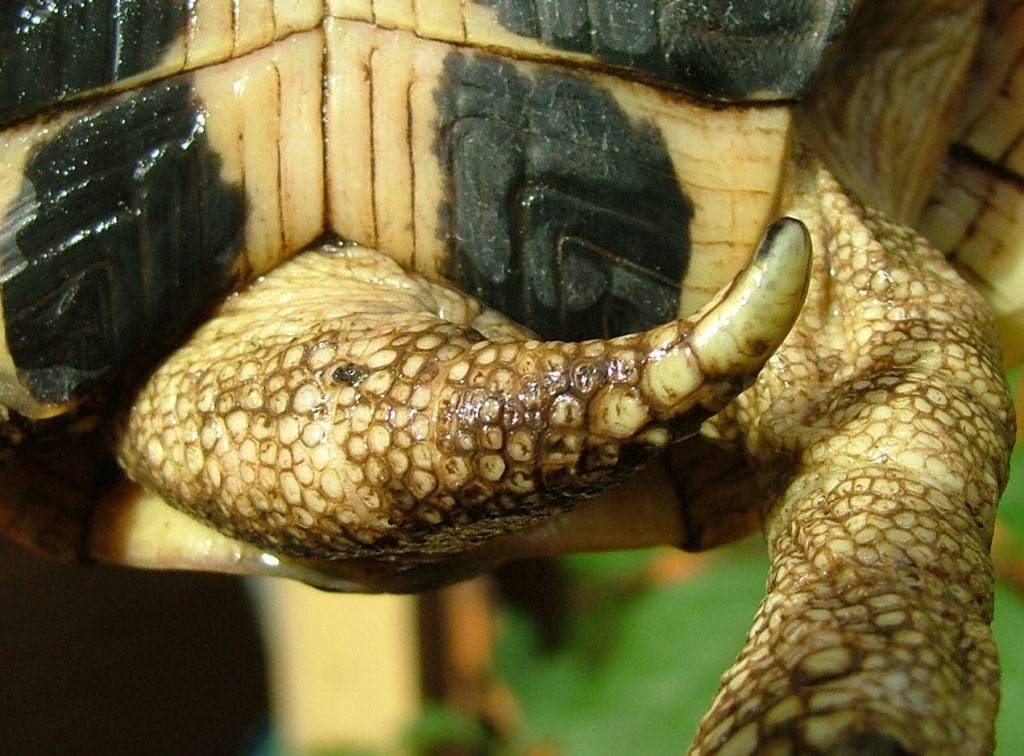 Когти . Практически у всех видов, кроме леопардовой черепахи, когти самцов на передних конечностях длиннее, нежели у самок.