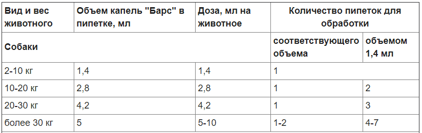 Оптимальная дозировка препарата “Барс” зависит от веса животного