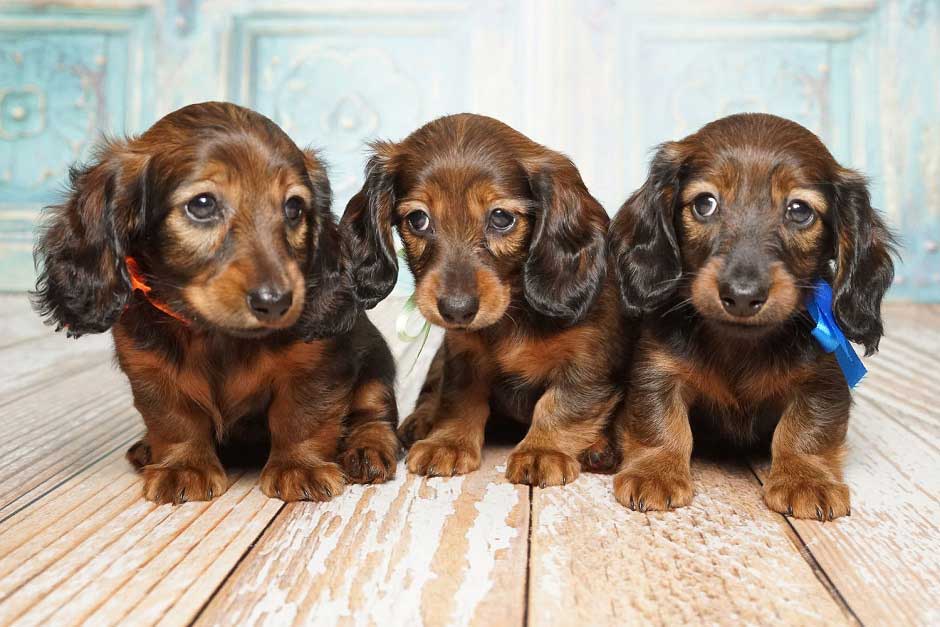 Карликовые таксы могут иметь различные окрасы, чаще всего это черный подпалый, коричневый подпалый, рыжий и мраморный.