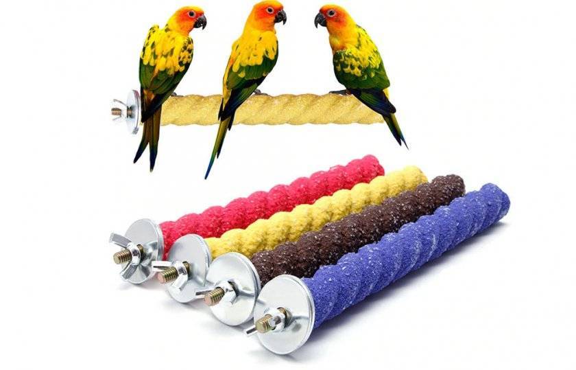 Ветеринары советуют использовать жёрдочки из вулканической твёрдой пемзы. Этот материал считается безопасным и идеально подходит для обтачивания когтей птицы.