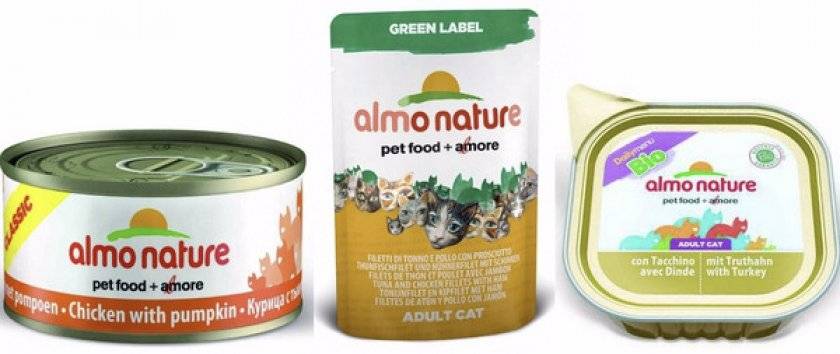 Специалисты отмечают, что влажное питание и консервы от «Almo Nature» — более качественны. Консервы итальянской компании бывают в следующих вариациях: