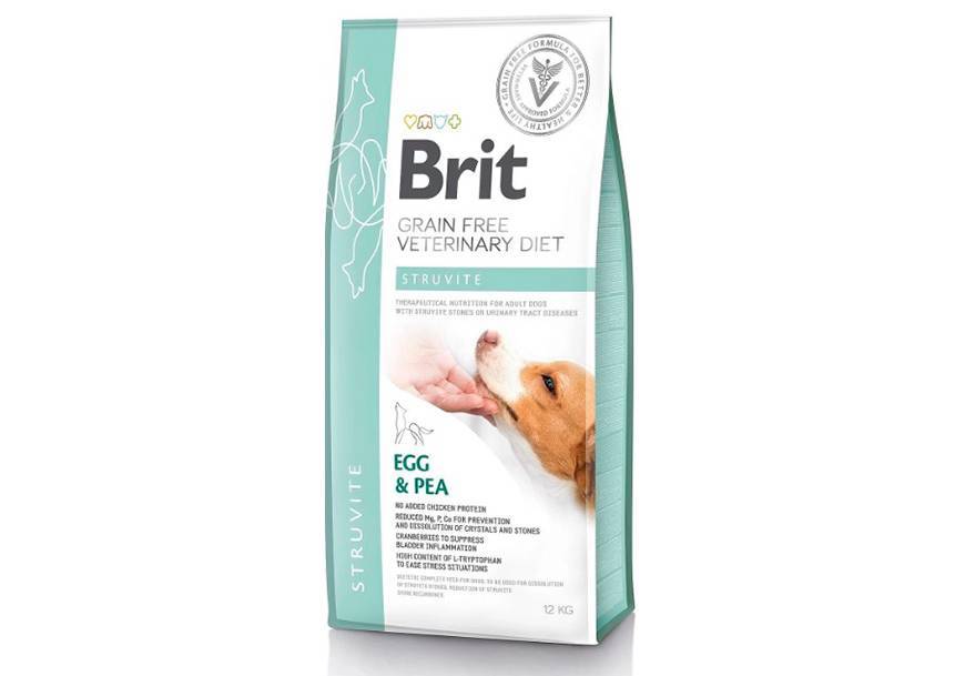 Брит – полностью беззерновое полнорационное питание для собак. Состав гранул призван помочь животным, страдающим от струвитных камней. Среди прочих ингредиентов числятся: клюква, метионин, пробиотики для здоровья кишечника.