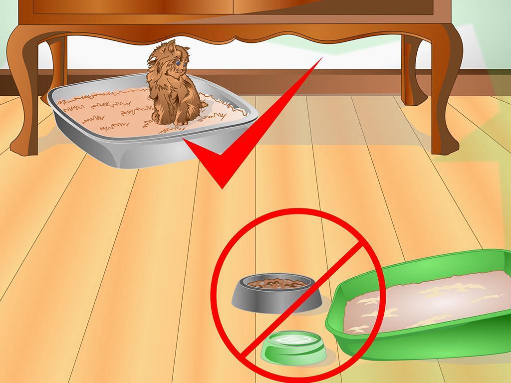 После каждого приема пищи относите животное к лотку. Можно сидеть рядом, пока он не закончит важные дела.