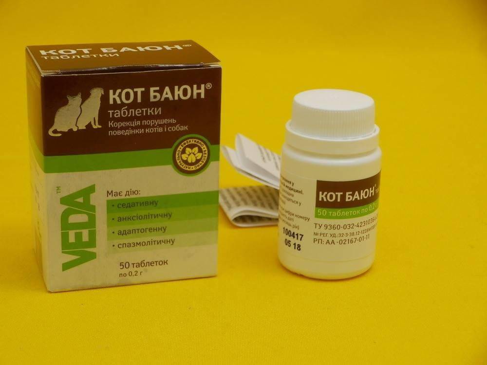 В травах, применяемых при изготовлении капель или таблеток, имеются и биологически активные добавки, благодаря которым Кот Баюн является успокоительным для кошек препаратом. Это лекарственное средство ослабляет чувство страха у животных, проявляет спазмолитическое, седативное и болеутоляющее действие. Оно помогает кошке безболезненно адаптироваться к новым условиям, укрепляет ее организм, что так необходимо для нормализации поведения наших питомцев.