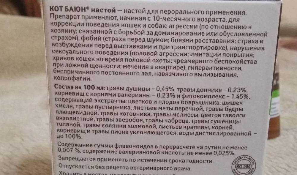 Обратите внимание, что в составе обязательно присутствуют корневища валерианы. Если в прошлом вы замечали у кота или кошки нестандартную реакцию на запах этого растения, то с приемом успокоительного средства «Кот Баюн» она может усугубиться. Поэтому, если валерьяна вызывает атипичное действие и питомец становится неуправляемым, то от препарата лучше отказаться