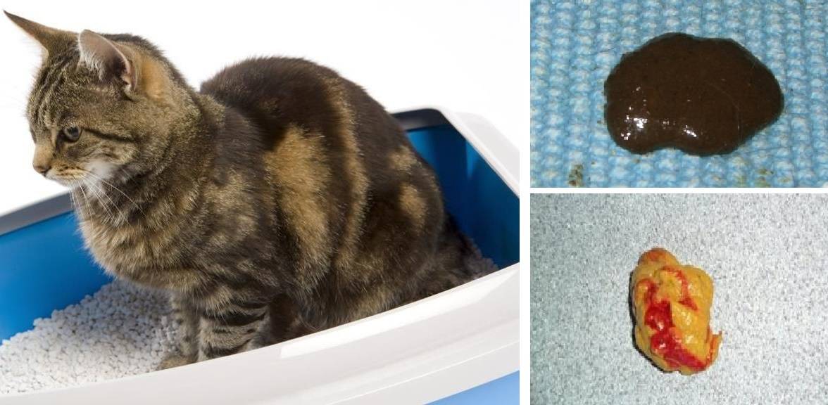 Кровь в кале у кошки не всегда видна, может быть скрытой. Поэтому есть риск не заподозрить кровотечения, несмотря на ухудшение здоровья питомца. На наличие в кале крови указывает черный стул, твердый, с алыми прожилками или вкраплениями. Массы могут содержать слизь. При проблемах в верхнем отделе кишечника твердый или жидкий стул с кровью будет черным, в нижних – красным.