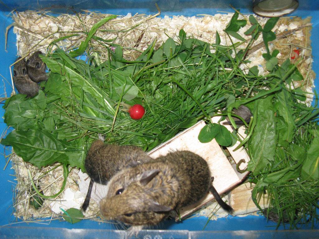 Свежая трава – лучший вариант для дегу в любое время года. Весной, летом и в начале осени её можно собирать на полях за городом, а в зимний период – выращивать на подоконнике в квартире или на балконе.